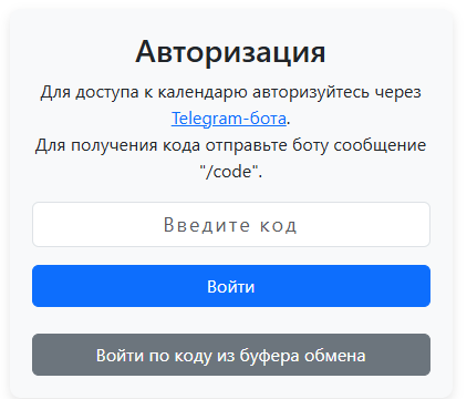 • Кнопка "Очистить календарь" полностью очищает календарь. Для безопасности предусмотрено три степени защиты от случайного удаления: два подтверждения кнопкой и одно подтверждение с вводом 6-значного кода в поле.